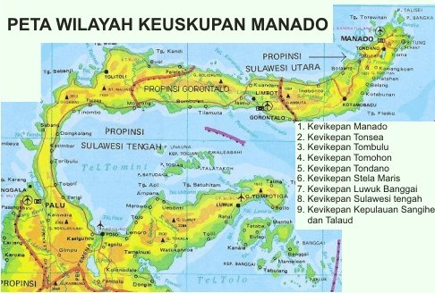 Keuskupan Manado saat ini meliputi Wilayah Provinsi; Sulawesi Utara, Gorontalo, dan Sulawesi Tengah